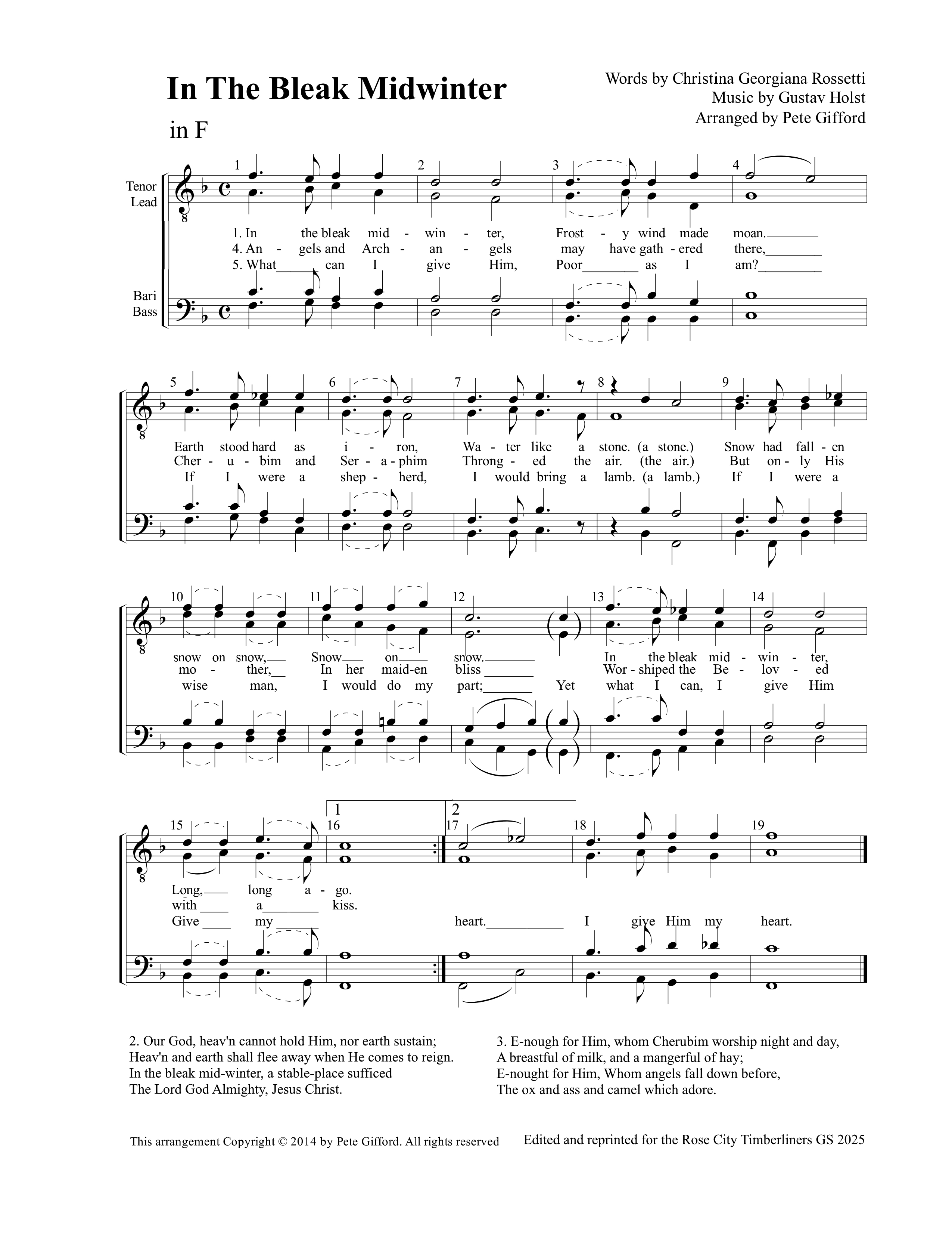 We'll decide soon what verses and rhythms the Rose City Timberliners Chorus will sing in December 2025.
